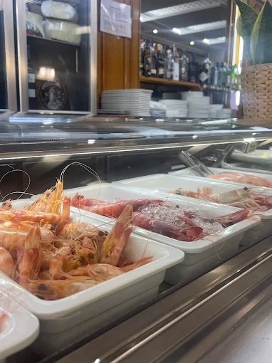 Mariscos y pescado de lonja en restaurante mediterráneo de ambiente cuidado con barra para tapear y comedor.