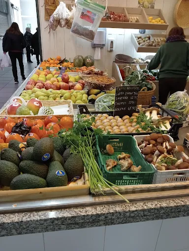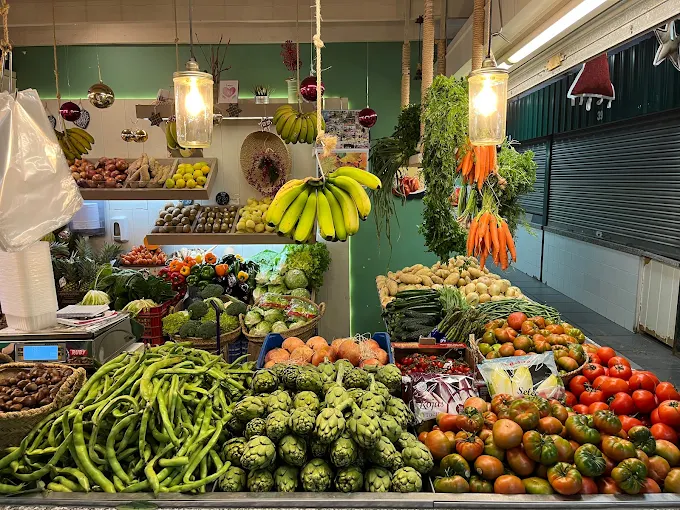 Puesto familiar de frutas y verduras frescas, además de tener frutas de cosecha propia y frutos secos, situado en la planta superior de la Plaza de Abastos.