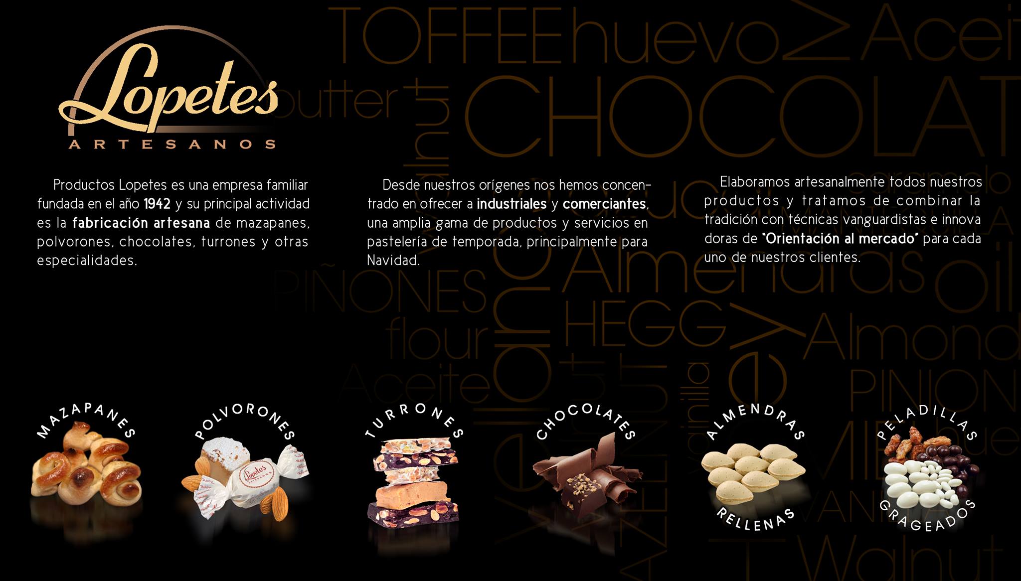 Con más de 80 años de experiencia, nos dedicamos a la fabricación artesanal de mazapanes, polvorones, chocolates, turrones y otros productos exquisitos.